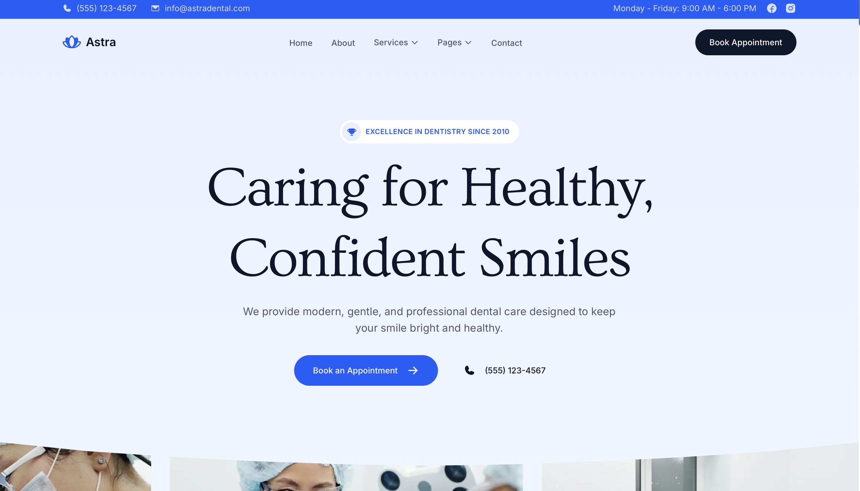 A modern dental website concept focused on trust, cleaner service presentation, and more appointment inquiries.
